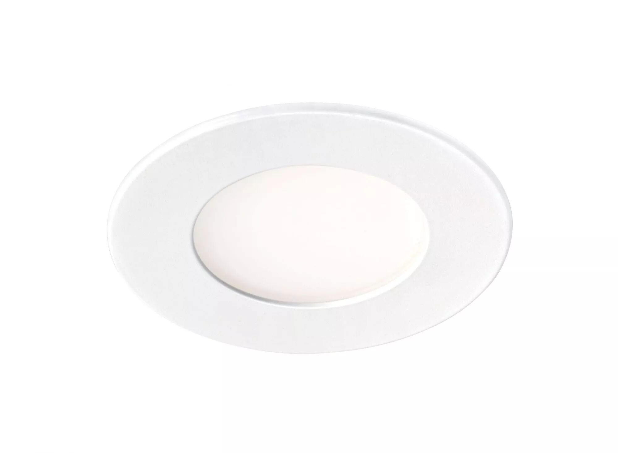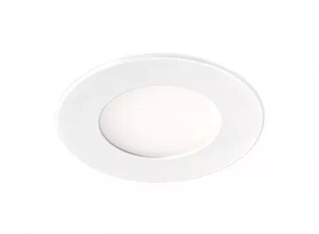 Encastré faible épaisseur, rond Ø85mm, fixe, blanc, 110°, LED intégrée 5W 4000K 450 lumens. Alimentation LED CC 200mA fournie, séparée.