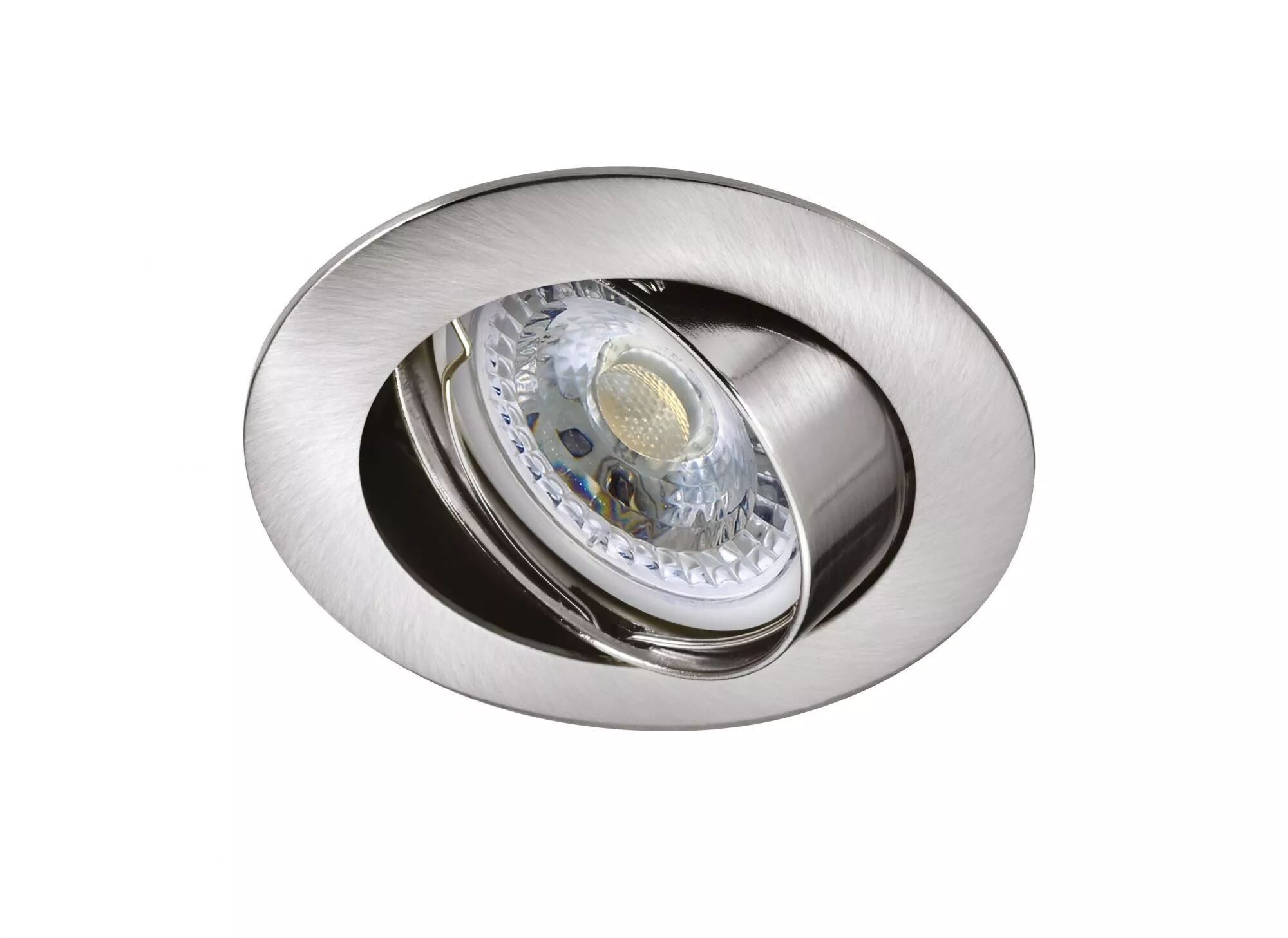 Encastré GU10 rond, basculant, nickel, fourni, avec lampe LED 7W 4000K 670 lumens 15000h.