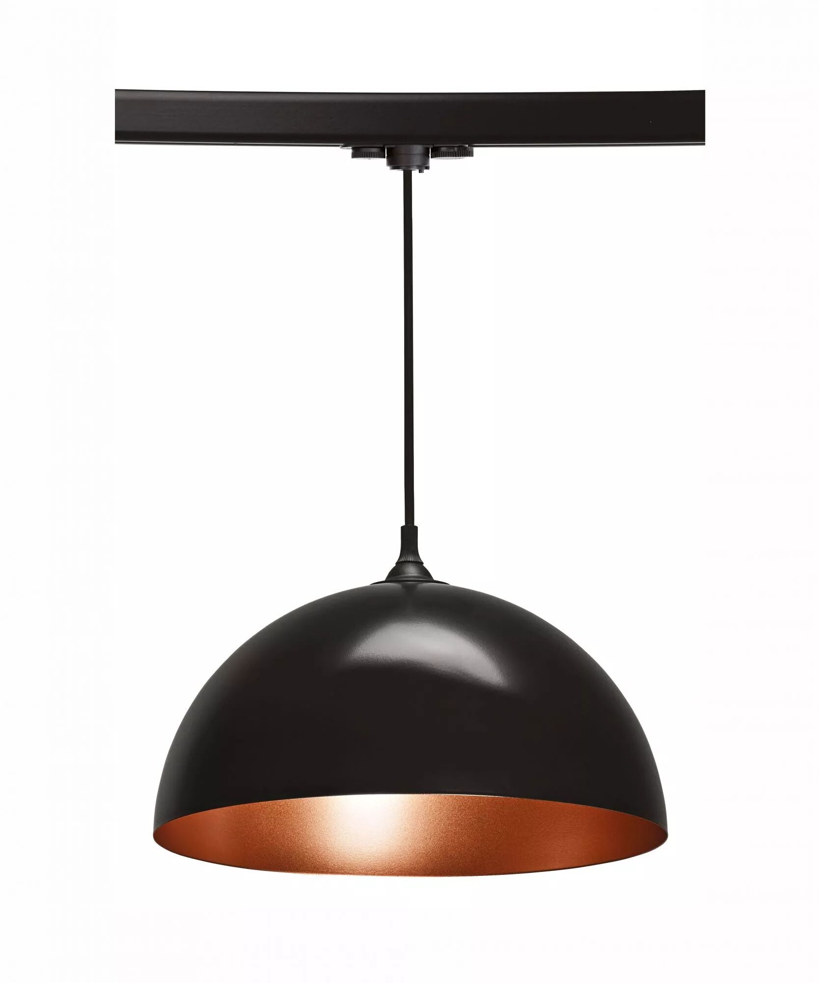Suspension E27 60W max, Ø335mm, acier noir, intérieur cuivré, lampe non fournie, précâblée avec adaptateur 023 pour montage sur Rail 3 allumages