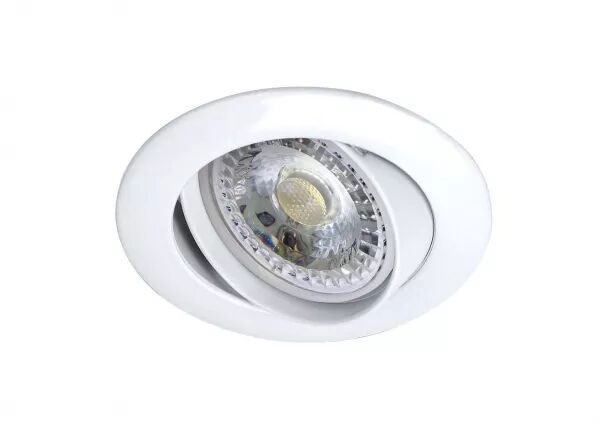 Encastré GU10 rond, basculant, blanc, fourni, avec lampe LED 7W 3000K 650 lumens 15000h.