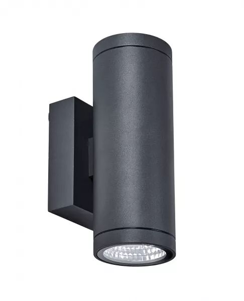 Applique murale Extérieure IP65 IK07, éclairage double faisceau 50° haut/bas, corps aluminium graphite, cylindrique, LED intégrée 2x10W 3000K, flux sortant 2x750 lumens, 30000H, dimmable par coupure de phase