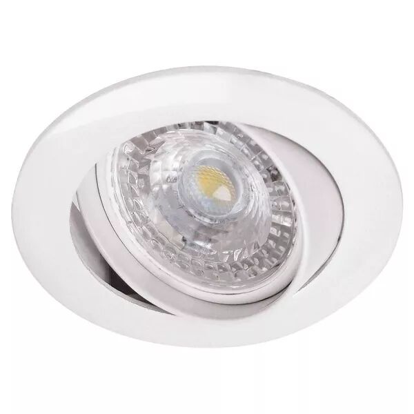 Encastré GU10, rond Ø82mm, blanc, avec lampe LED STEP DIM 4, 5W 40° 2700K 390 lumens, 25000H, variable StepDim : c'est à dire que vous gérez directement la variation de la lampe via l'interrupteur (3 modes : 100% ; 45% ; 15%).