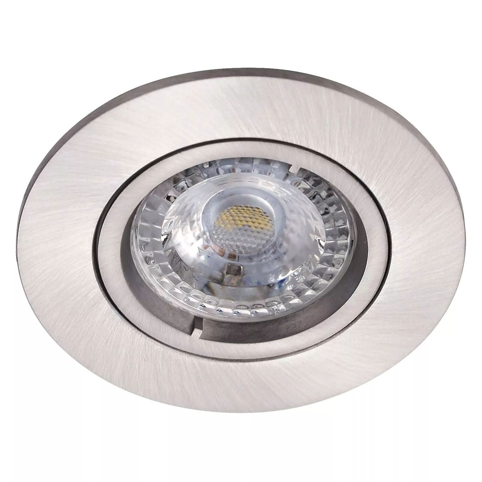 Encastré GU10 rond, fixe, nickel, fourni, avec lampe LED 8W 3000K 700 lumens.