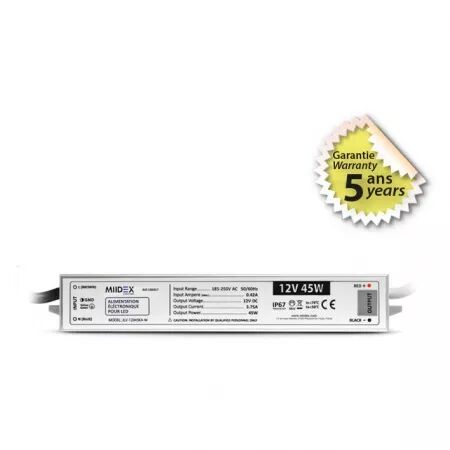 MIIDEX - ALIM 12V DC LUMINEUX 45W IP67 5ANS (100467)