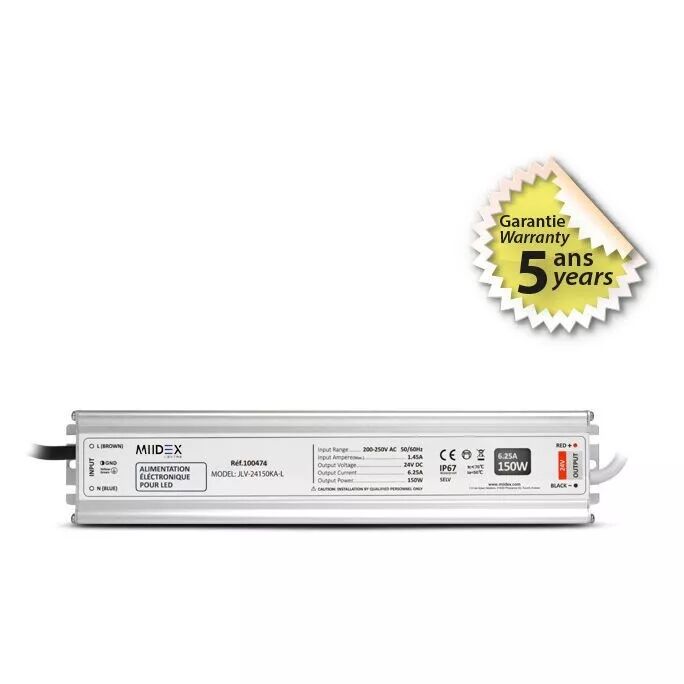 MIIDEX - ALIM 24V DC LUMINEUX 150W IP67 5ANS (100474)