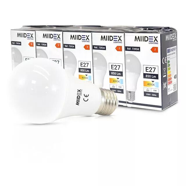 MIIDEX - LED 8.5W BULB E27 4000K BOITE PACK DE 5 (739340)