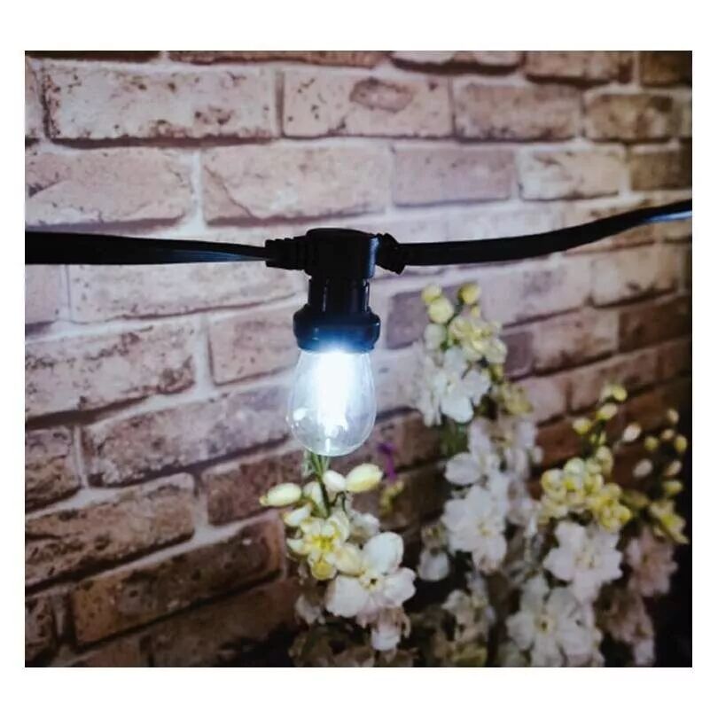 Accueil > Éclairage > Éclairage extérieur > Bandeau - Guirlande - Lèche-mur - Ruban > MIIDEX - GUIRLANDE FORAINE CABLE PLAT NOIR 10 METRES 20 DOUILLES B22 (5102)